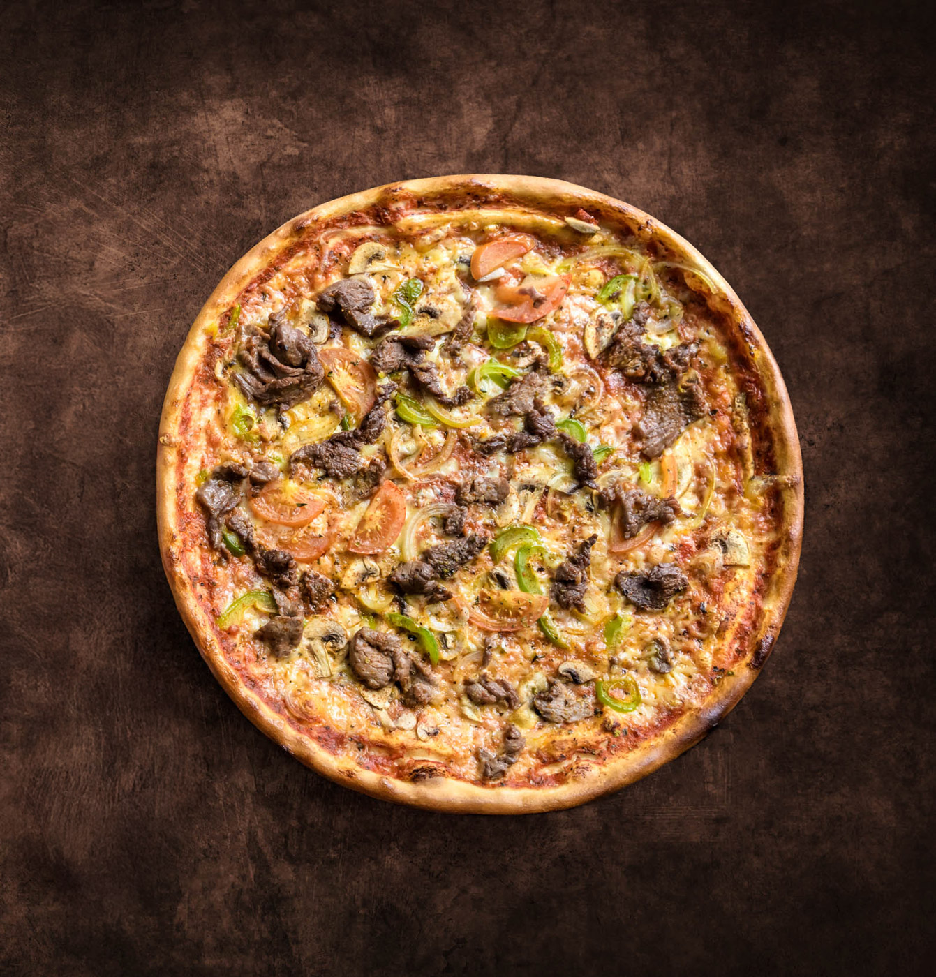 oxfilé, mozzarellaost, tomater, paprika, lök, bearnaisesås